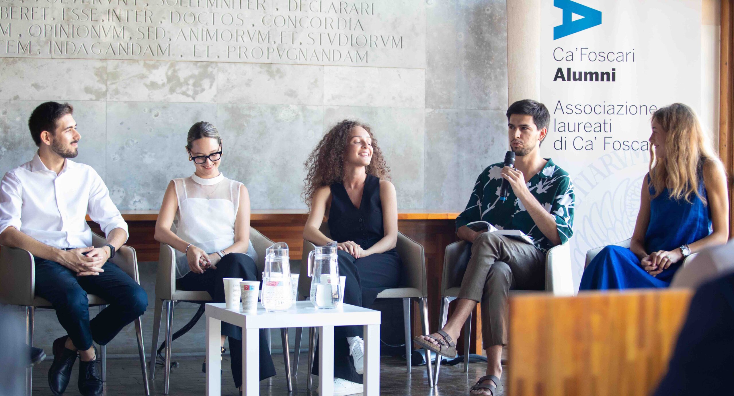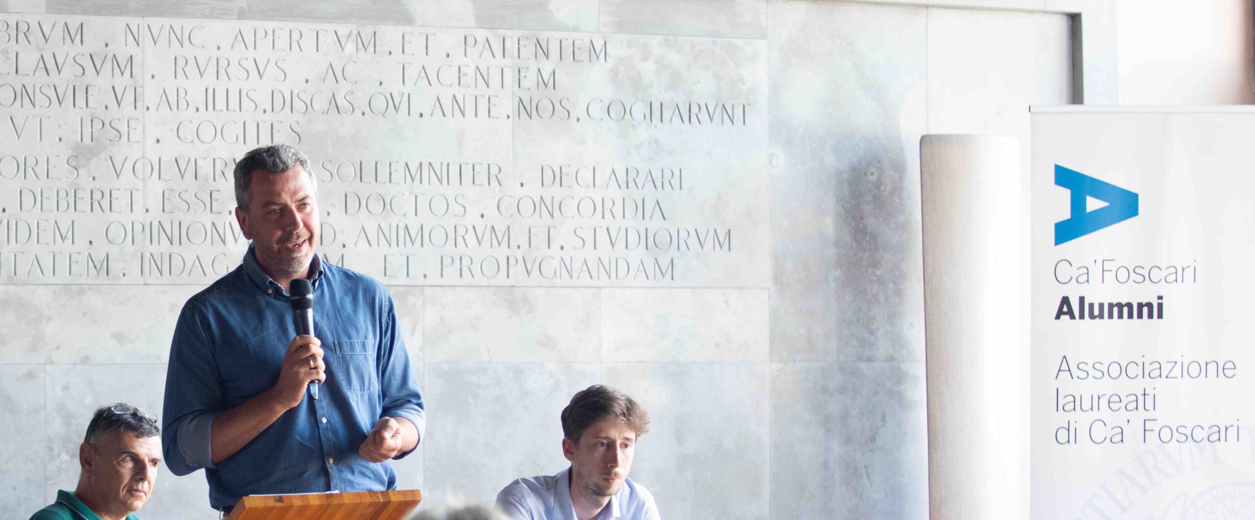 E si prosegue con gli onori di casa Ca’ Foscari, dal Prof. Elvi Cattaruzzaprorettore al diritto allo studio e servizi agli studenti, a Marco Cosmo direttore di Ca’ Foscari Alumni, a Massimiliano Vianello direttore di Edizioni Ca’ Foscari.